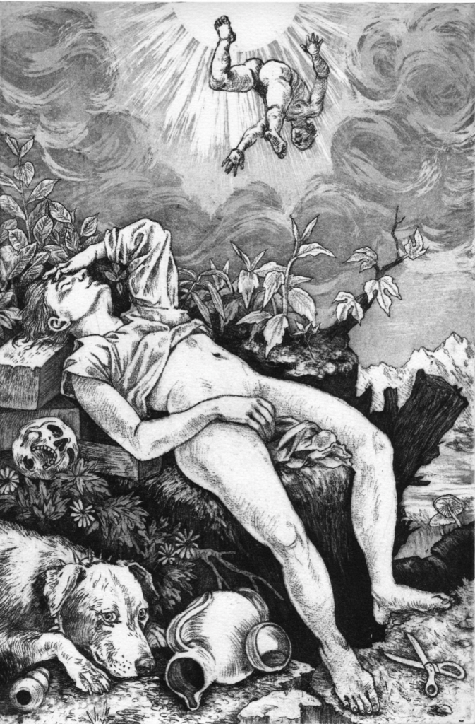 Anna Wagner, Falling/Flying, softground etching and rosin aquatint on copper image size 10.5”x7,” printed on a sheet of 11” x 15” Hahnemule copperplate paper, $100